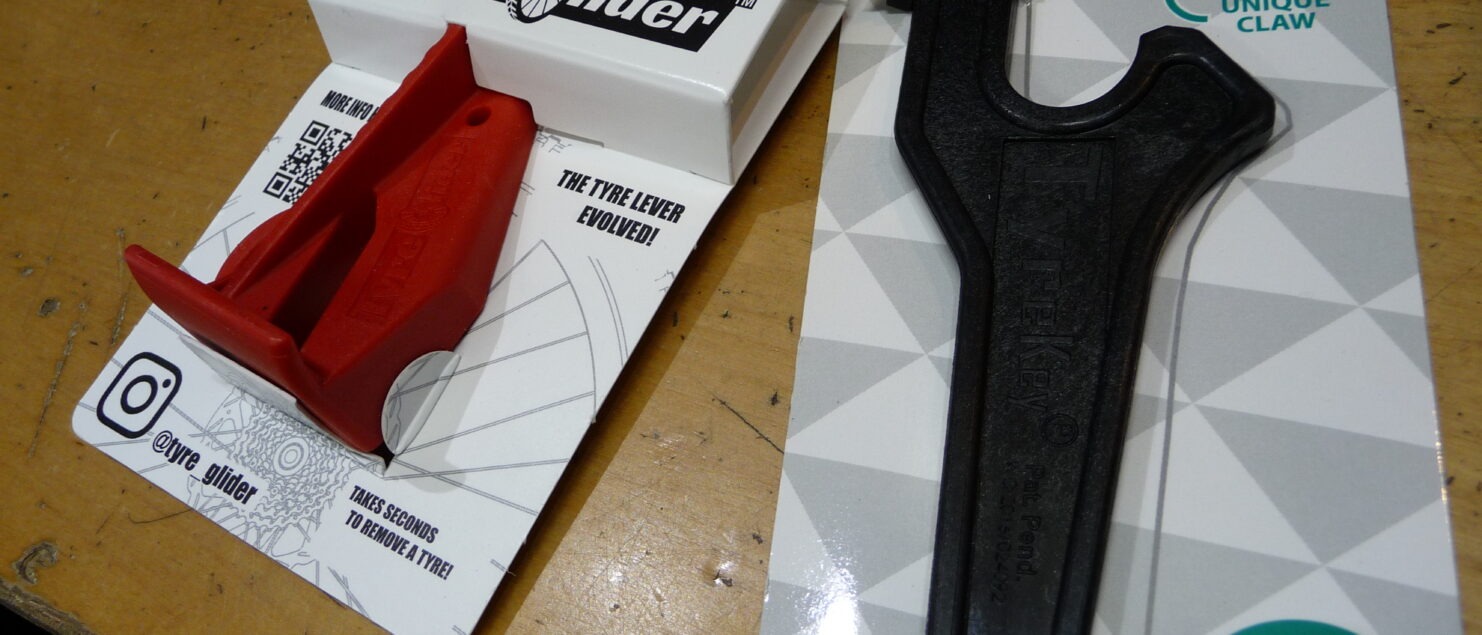 タイヤが硬くてはめづらかったり、空気を入れる時にチューブをかんでて気がついたらパーンってチューブをダメにしてしまったことはありませんか?タイヤキーは失敗しないタイヤ交換ツールです。
